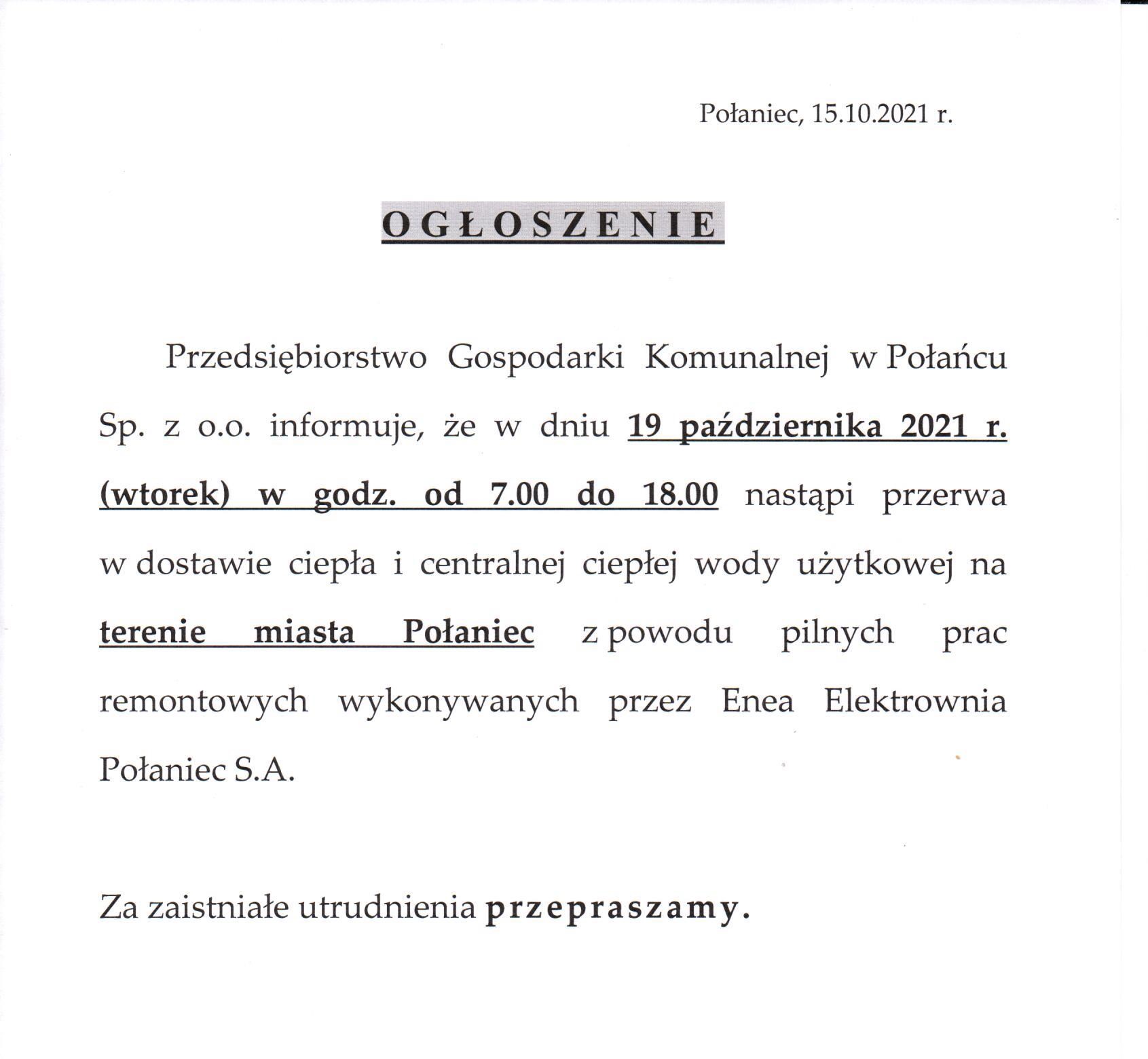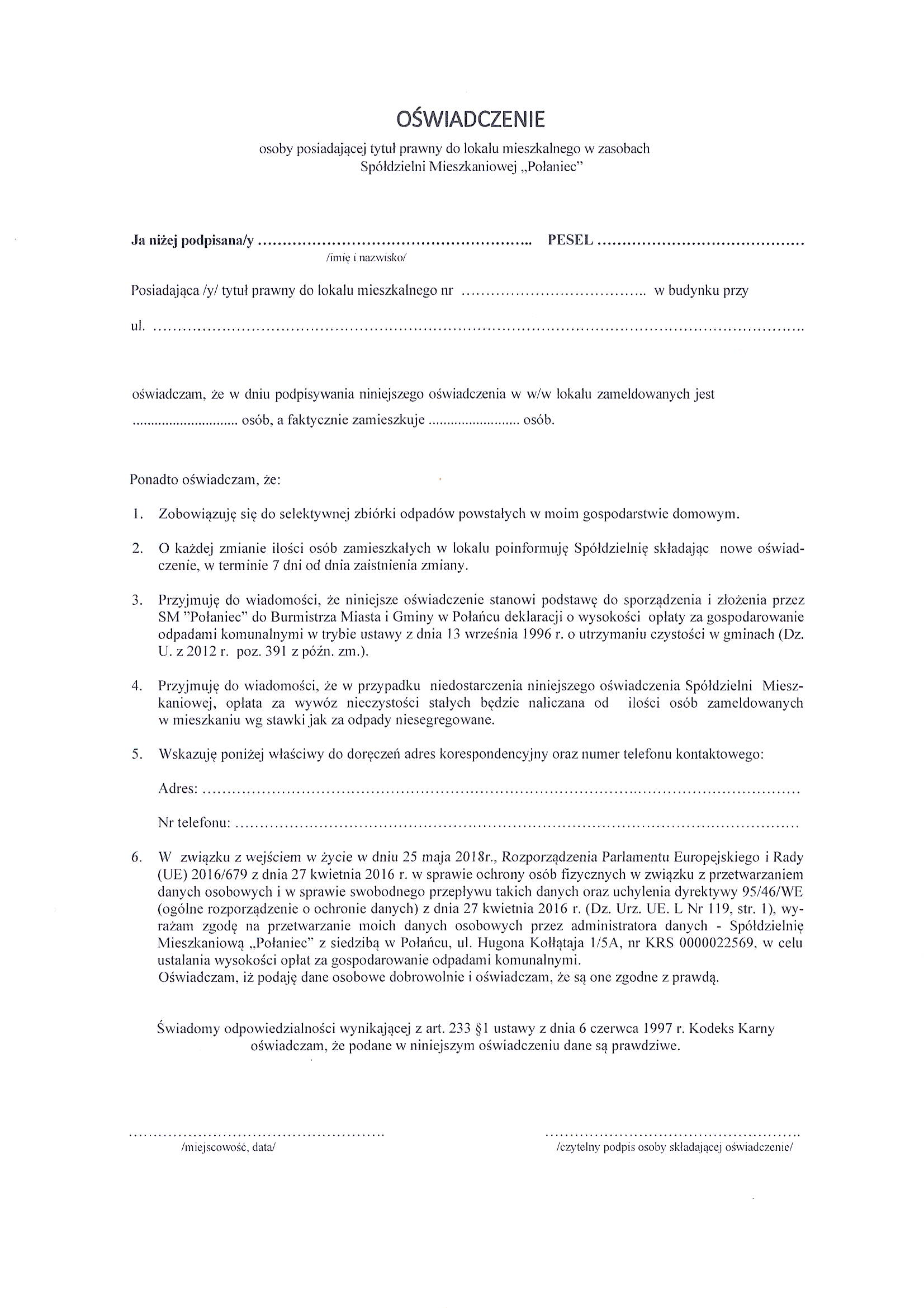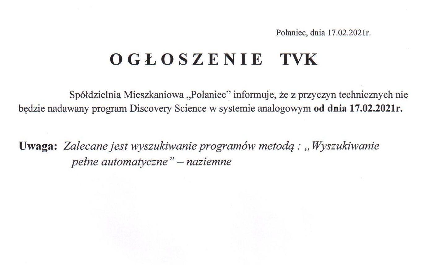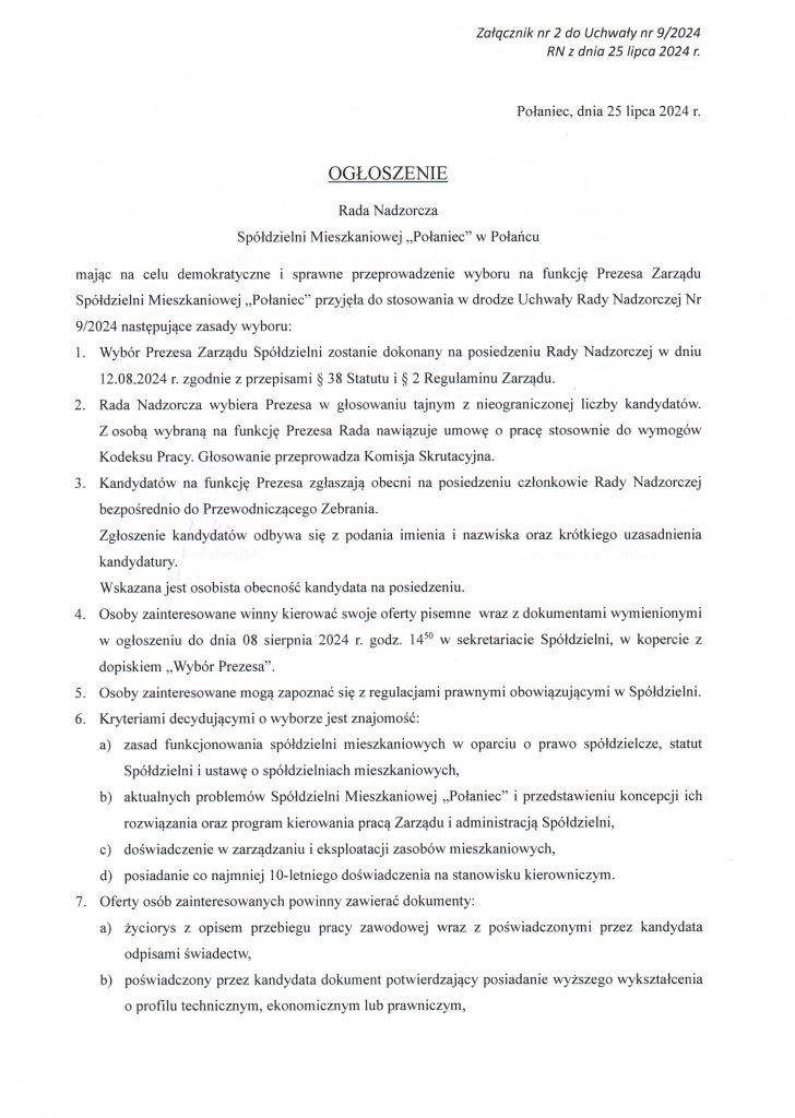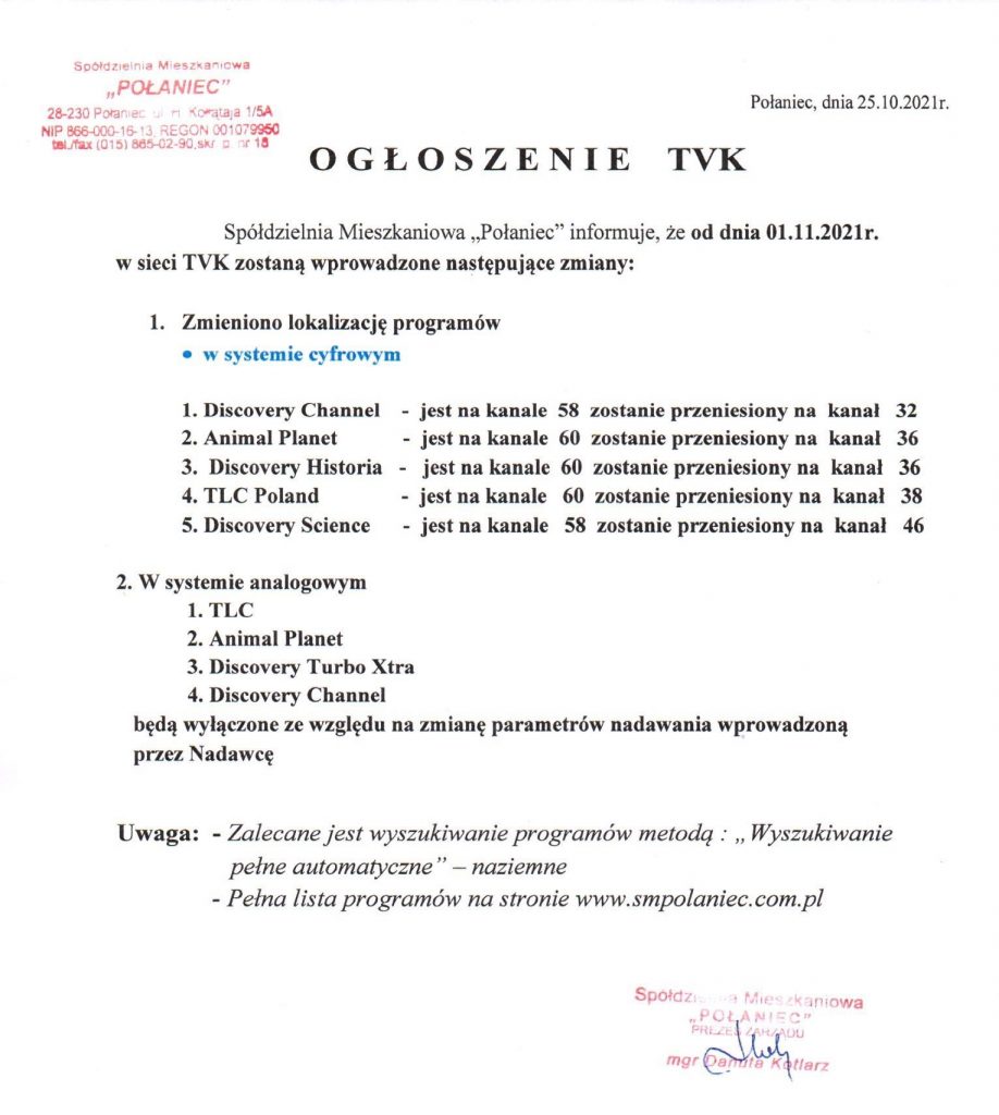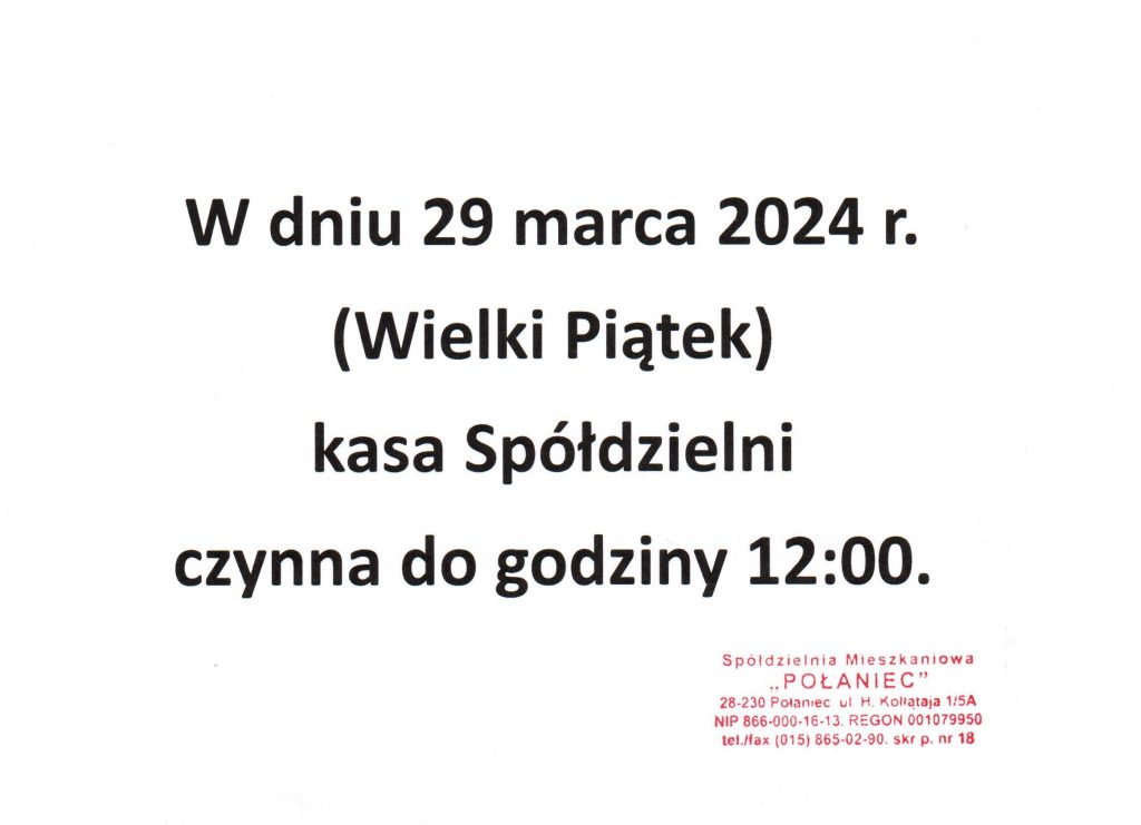 Spółdzielnia Mieszkaniowa „Połaniec” informuje, że od dnia 19.04.2022r.