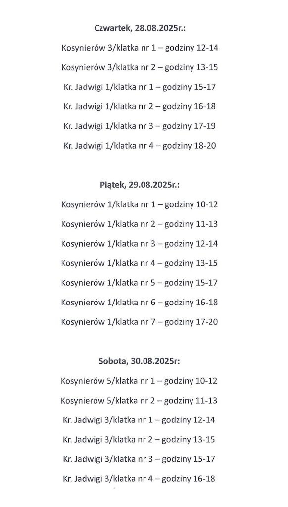 Kr. Jadwigi 10/klatka nr 2 – godziny 16-19